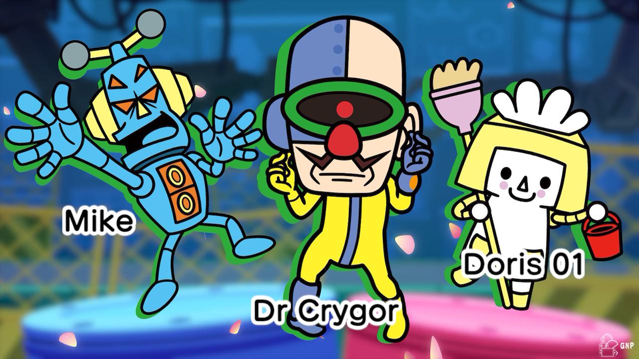 - Mike (Star du karaoké, il se balade comme un électron libre et attaque les ennemis avec sa voix robotique)