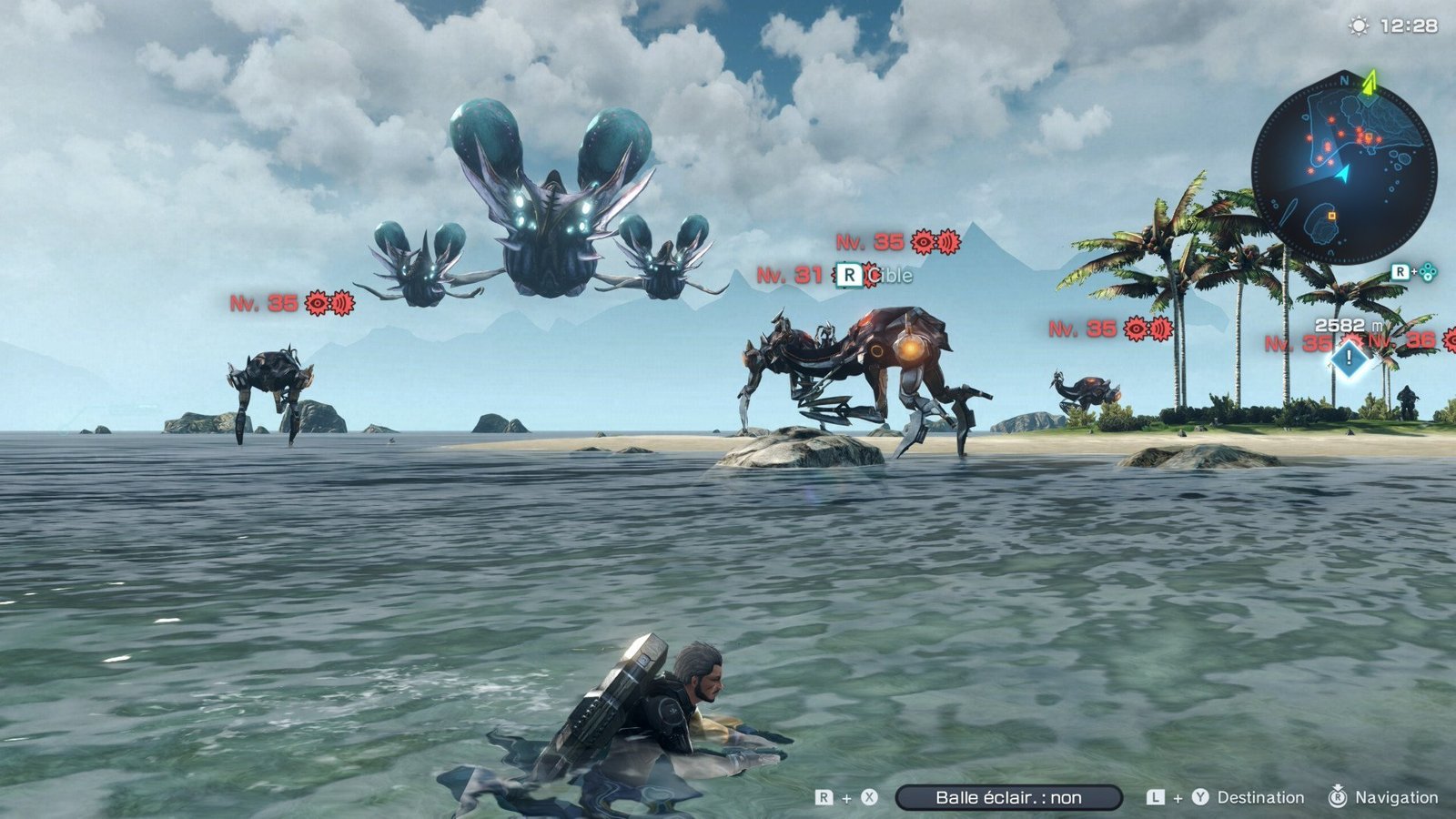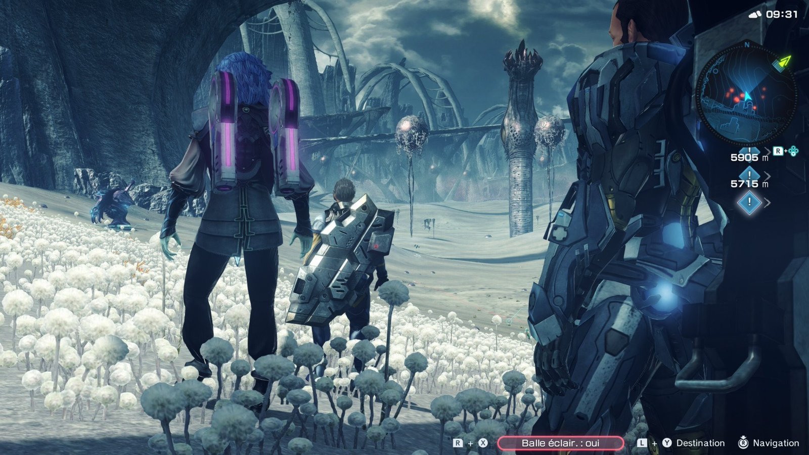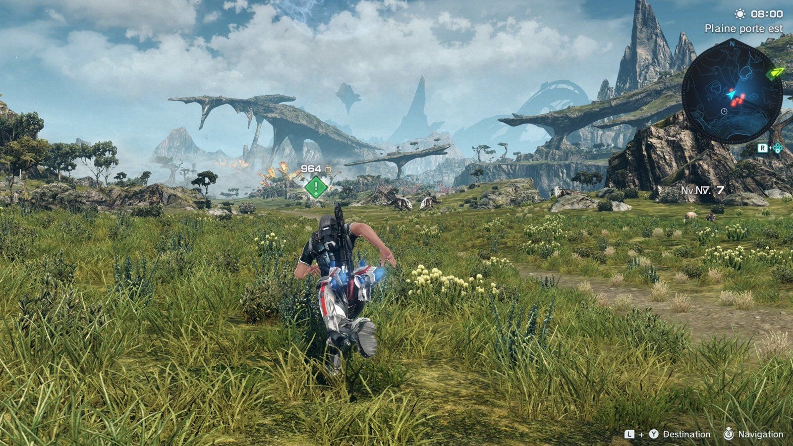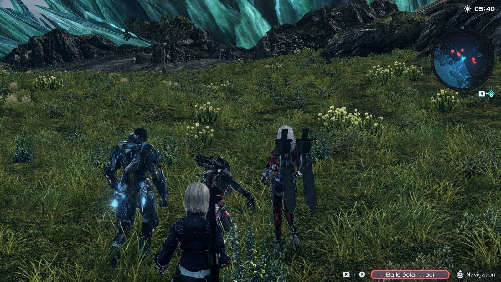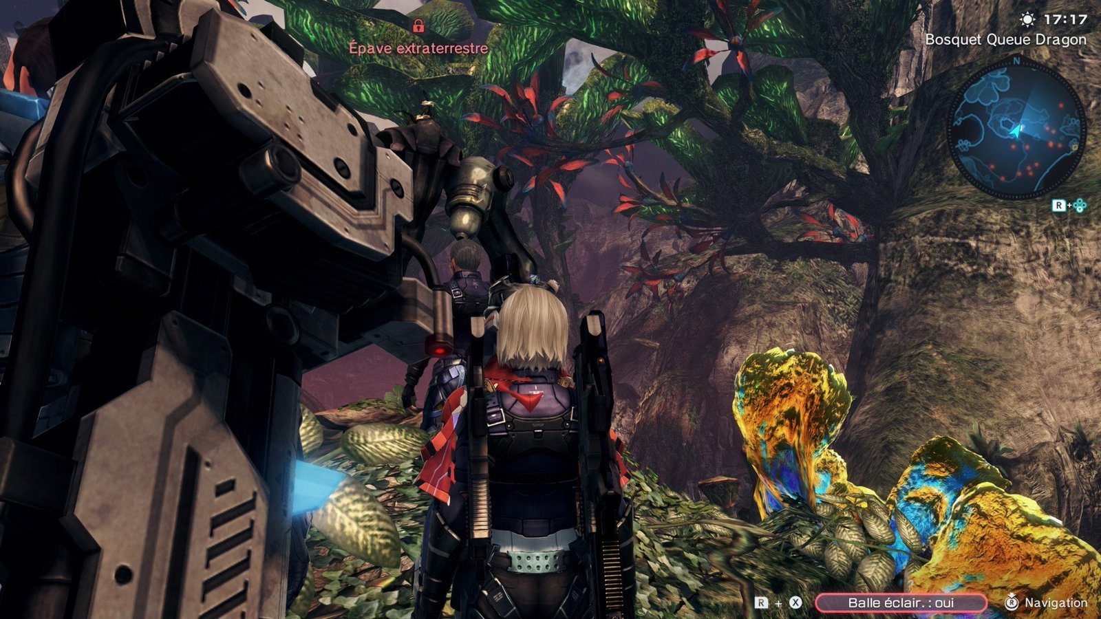 Ça y est, l’aventure commence, et vous voici prêt à explorer le monde dangereux de la planète Mira, qui constitue un espace de jeu de 245 km². Oui, vous avez bien lu, la carte est gigantesque et le pire dans tout cela, c’est qu’elle n’est pas vide ! Dans Xenoblade Chronicles X, il y a de la vie partout, que ce soit la faune et la flore qui peuplent les lieux, mais il y également des humains, des ennemis, des marchands, des quêtes secondaires, des trésors ou encore les morceaux de « la Grande Blanche » à retrouver pour ne citer qu’eux.