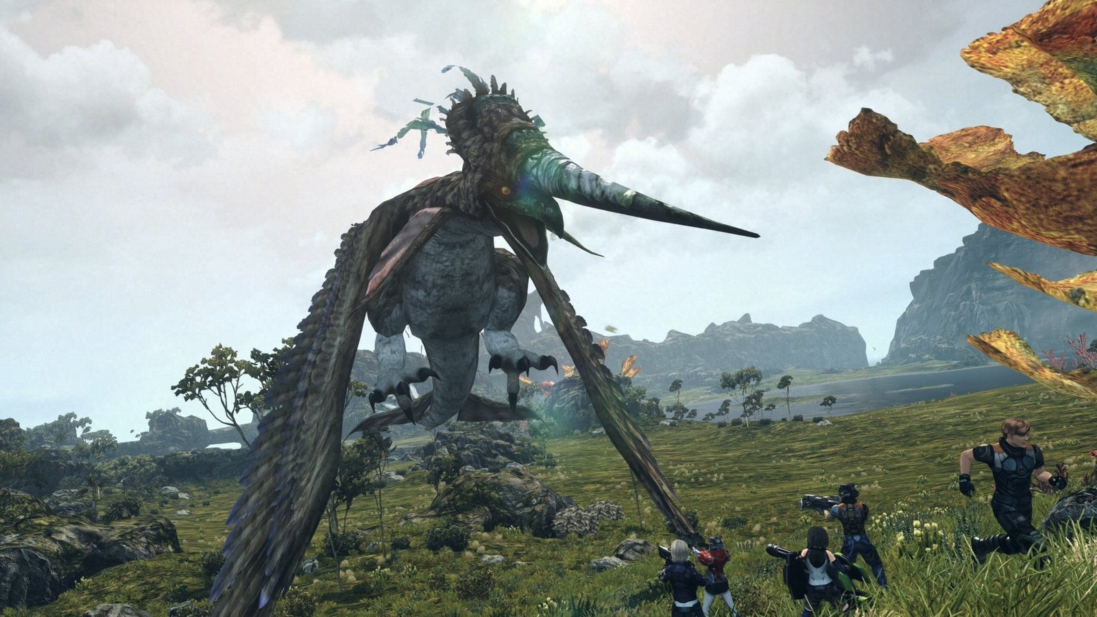 Le Skell permettra de venir à bout de certains types d’ennemis plus facilement, mais également d’atteindre des zones inatteignables à pied pour trouver des grottes en contrebas, voire des zones cachées en hauteur. Vous l’avez compris, le jeu évolue durant toute votre aventure. Et en dehors des missions, des trésors à trouver ou des pièces du vaisseau, il y aura également la possibilité d’abattre des tyrans, qui sont des créatures plus puissantes que leurs congénères et qui empêchent les autres membres de Blade d’effectuer leurs missions.