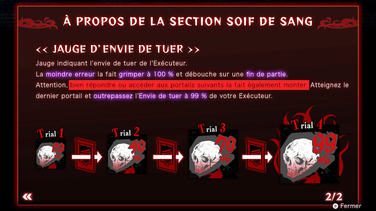 Durant cette phase, il arrive que votre Executionner ait subitement une « soif de sang » et aura une grande envie d’appuyer sur le bouton synonyme de mort sûre pour le prisonnier ! Vous allez devoir faire en sorte de l’en dissuader en répondant correctement à 4 questions. Si vous échouez… Ce sera game over.
