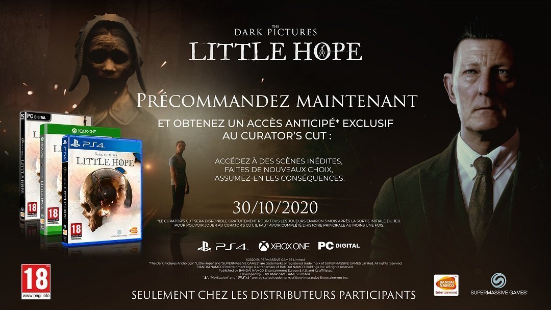 Chez GeekNPlay, on avait apprécié le premier opus et nous attendons avec impatience celui-ci en espérant qu’il possède une durée de vie un peu plus longue que The Dark Pictures : Man of Medan… De votre côté, connaissez-vous la série ? Attendez-vous The Dark Pictures Anthology : Little Hope ? Si la réponse est positive, alors il est bon de savoir que le titre proposera une édition Standard, Limitée et Collector avec des bonus de précommande. Les précommandes seront disponibles uniquement en ligne et auprès des revendeurs participants.