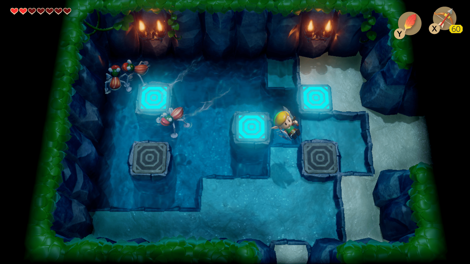 Dans sa quête pour réveiller le Poisson-Rêve, Link devra parcourir les nombreux donjons éparpillés à travers l’île. Vous explorerez ces labyrinthes pièce après pièce en résolvant des casse-tête déroutants, en déjouant des pièges mortels et en battant des monstres redoutables.