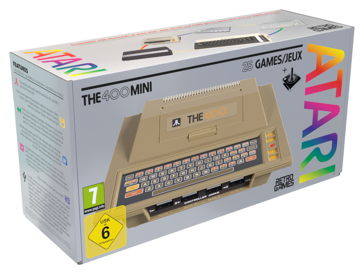 - La console exploite une technologie moderne mêlée aux couleurs et à la texture originales de l’Atari 400. Même le clavier à membrane a été gardé pour rappeler les sensations de l’ordinateur de base.
