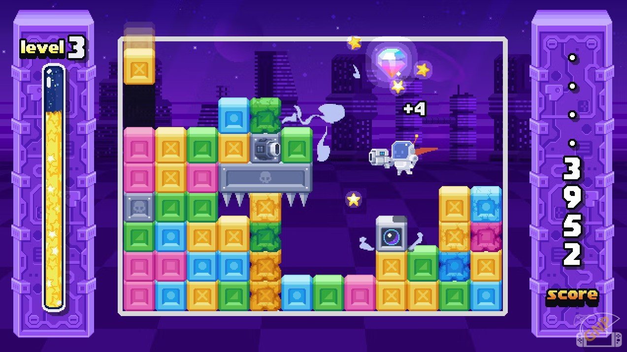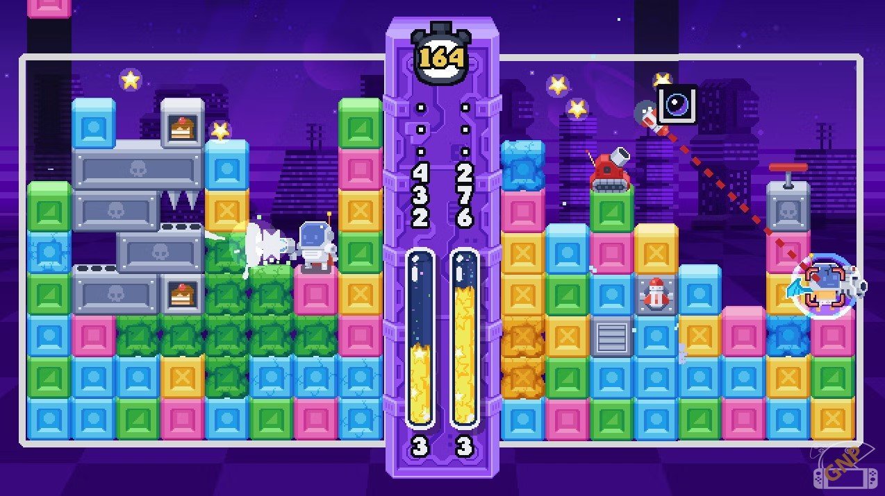 Dans UFO vous incarnez donc un cosmonaute qui doit survivre au milieu de bloc coloré faisant penser à Columns. Le mode solo vous promet un voyage spatial sur des planètes variées tandis que le mode multijoueur local vous fera affronter votre meilleur ami. A moins que vous ayez le courage d’affronter jusqu’à 20 ennemis en même temps dans des parties online endiablées.