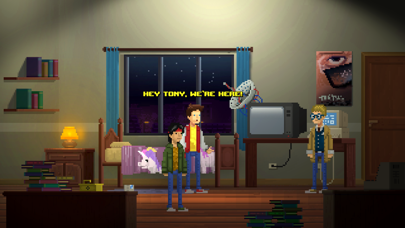 Vinny, Nick et Tony vont avoir besoin de notre aide pour comprendre ce qui se passe dans leur petite ville. Ils ont capté le signal de détresse d’un vaisseau extraterrestre alors qu’une série de crime bouleverse les habitants. Leur petit monde fait de cartes de baseball et de cassettes VHS est tout chamboulé. Nous allons donc les accompagner dans leur enquête ainsi que dans la grande aventure que représente le passage à l’âge adulte. Le tout dans un joli pixel-art bercé de musiques fleurant bon les années 80. De plus, ce sont une dizaine de fins qui sont à découvrir. Si cela ne vous donne pas envie…